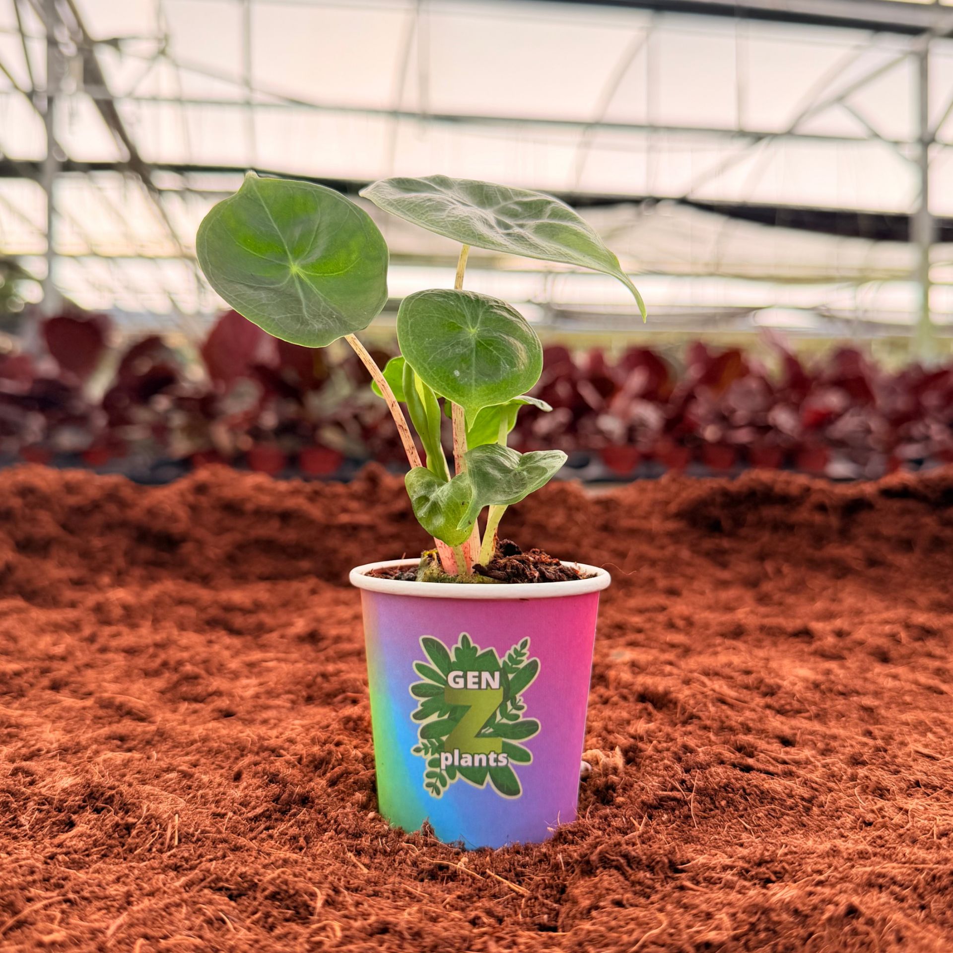 This variety develops sleek, elongated leaves with defined veins and a subtle sheen that highlights its juvenile form. The lightly blushed stems give each plant a refined contrast, making even the smallest size visually appealing. Growth is steady and symmetrical, with each new leaf emerging firm and well-shaped. As it matures, the plant maintains a tidy outline that helps it fit seamlessly into any retail display.