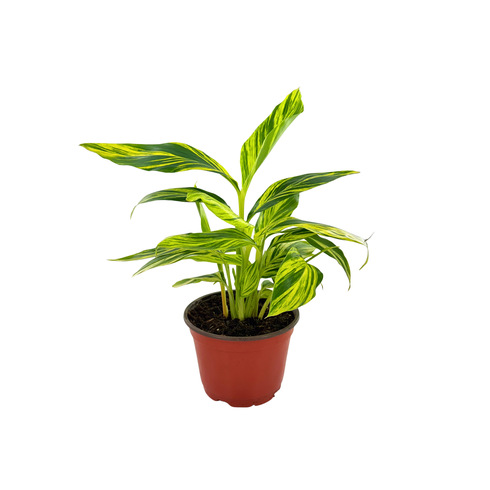 As it continues to mature, Variegated Alpinia becomes fuller, creating layered architectural clumps with even stronger striping and structure. It develops into a lush indoor accent or an impressive patio feature in warm climates. Whether enjoyed now or grown to its full ornamental potential, it brings color, rhythm, and sophisticated tropical elegance — a standout plant with lasting decorative value.