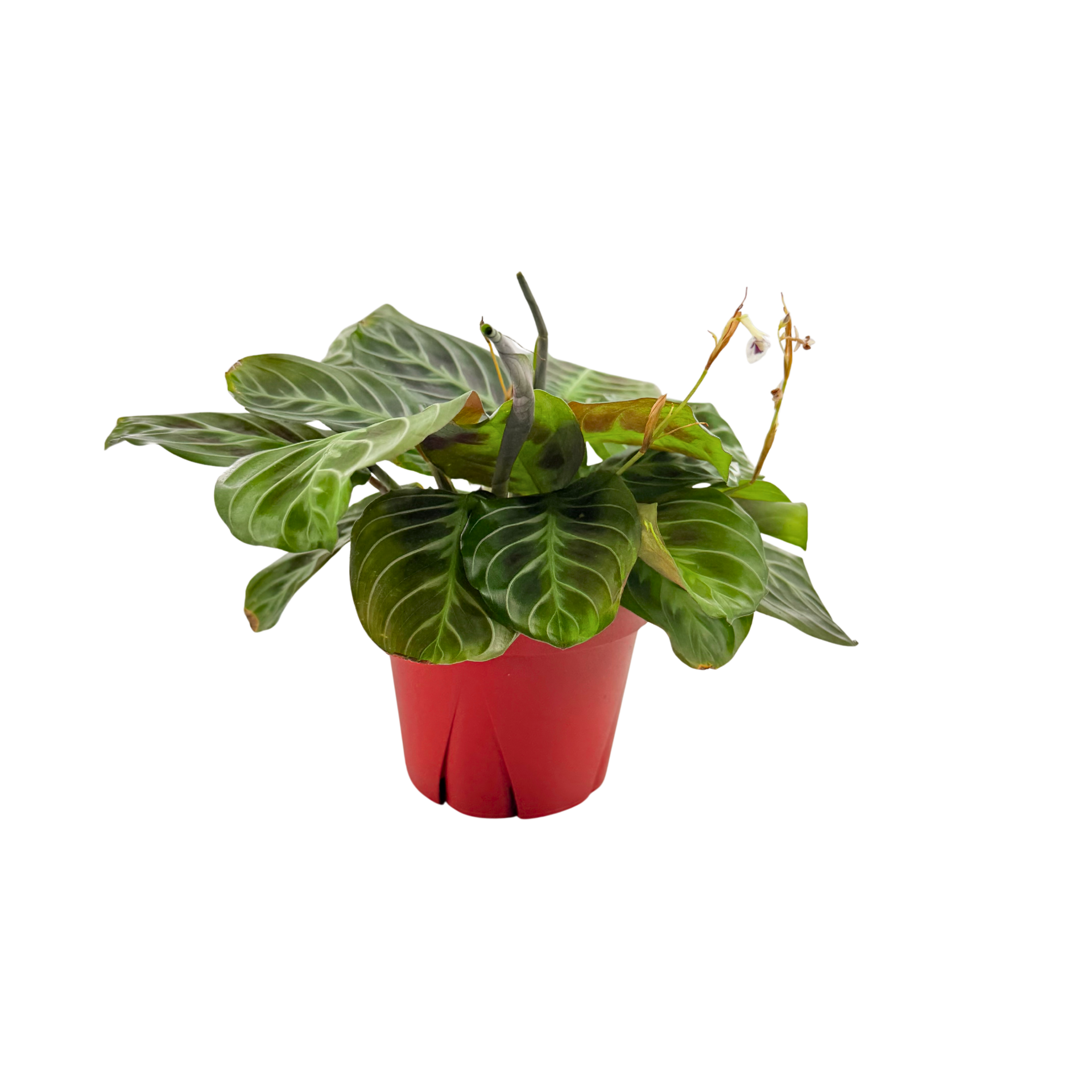 Over time, it forms a soft, trailing mound of foliage that becomes more expressive and full. The leaf patterns remain bold while the plant gains rhythm and shape. Because of its movement, soft textures, and unusual markings, Maranta ‘Cat Moustache’ stands out as a living, breathing piece of décor — subtle, playful, and always captivating.
