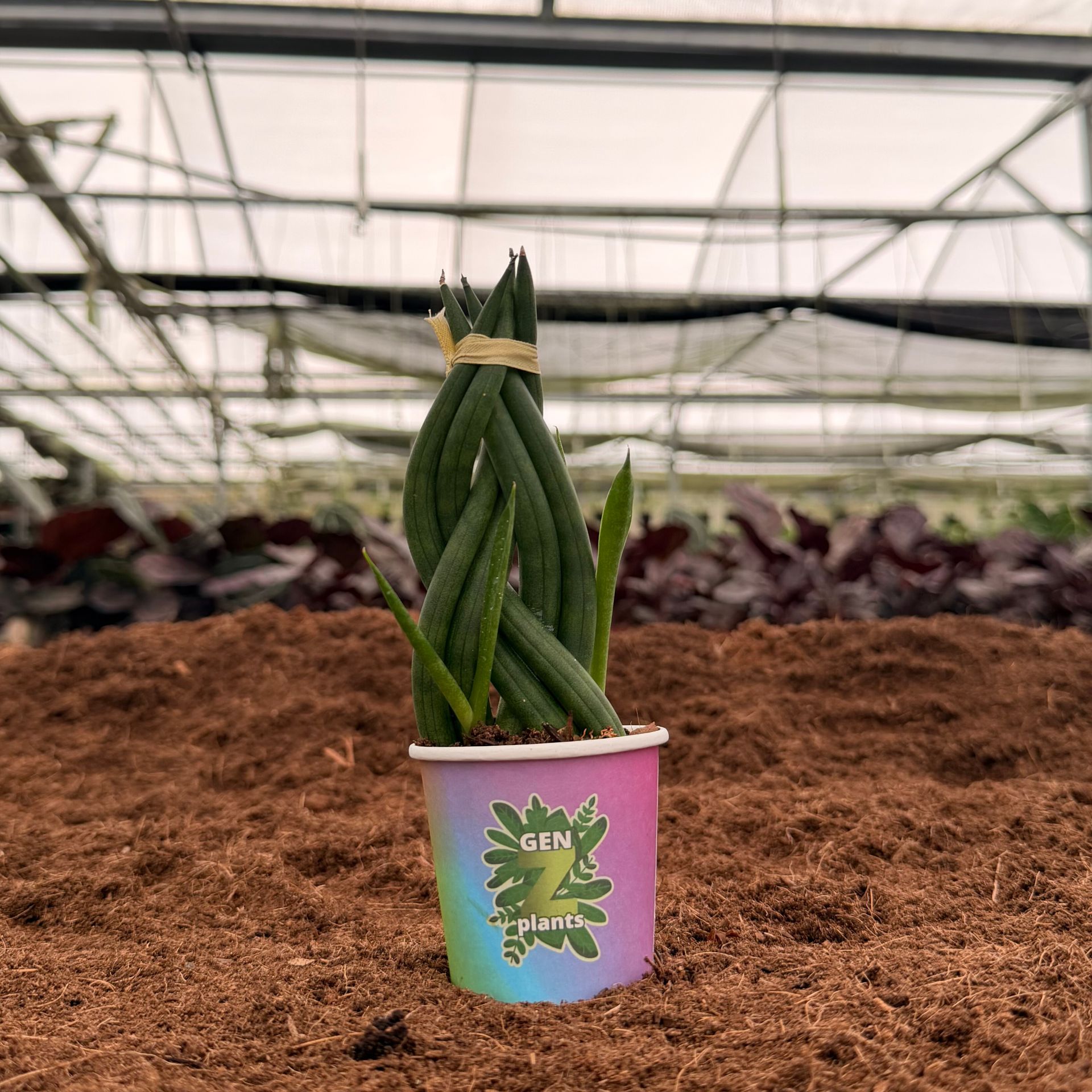This braided snake plant stands out with its artistic structure and sleek texture. Its geometric shape emphasizes clean design, making it ideal for contemporary décor. It stays visually compelling without needing rapid growth or frequent pruning. A great way to add style to surfaces where simplicity is key. A modern classic in miniature form.