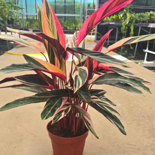 Stromanthe Triostar features striking variegation in soft pink, cream and deep green, creating a vibrant and artistic foliage pattern. Stromanthe Triostar thrives in bright indirect light and loves humidity to maintain crisp, colorful expression. A stunning prayer plant that adds excitement and elegance to décor. Stromanthe Triostar offers standout styling value that attracts quick customer interest. A bestseller in expressive foliage categories.